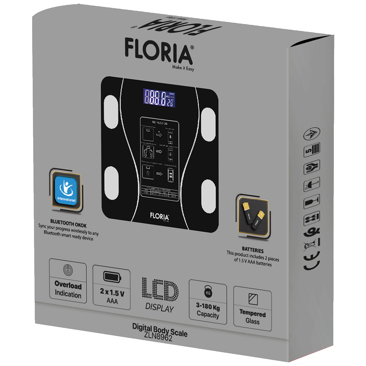 Pametna vaga za merenje, do 180kg, LED, Bluetooth, crna